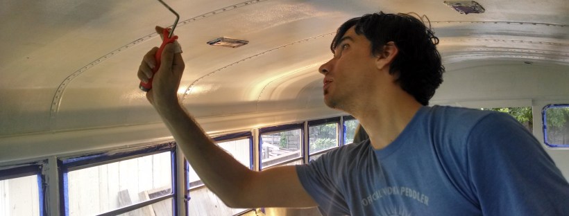 We made some exciting progress over the past two weeks and began painting the interior of our bus. This is a multistage process that began with LOT of prep work including such joyous activities as scrubbing, taping, and sanding. Thankfully we had cold beers to keep us going during the most laborious bits. I'll let … Continue reading Somebody Call Bob Ross